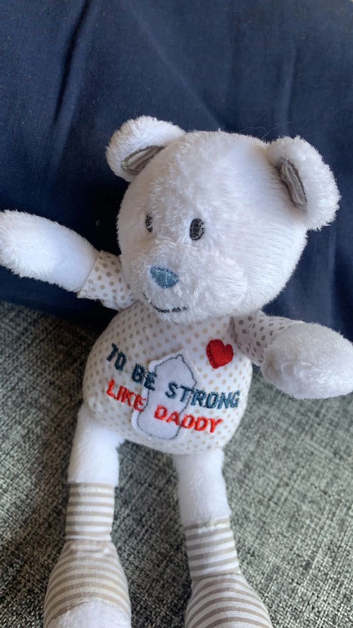 Doudou ourson blanc à rayures - To be strong Like Daddy - Tape à l’œil - photo numéro 4