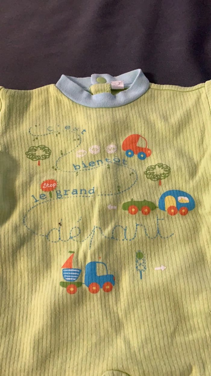 Pyjama bébé 1 mois vert motif voiture - photo numéro 3