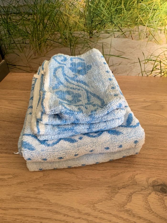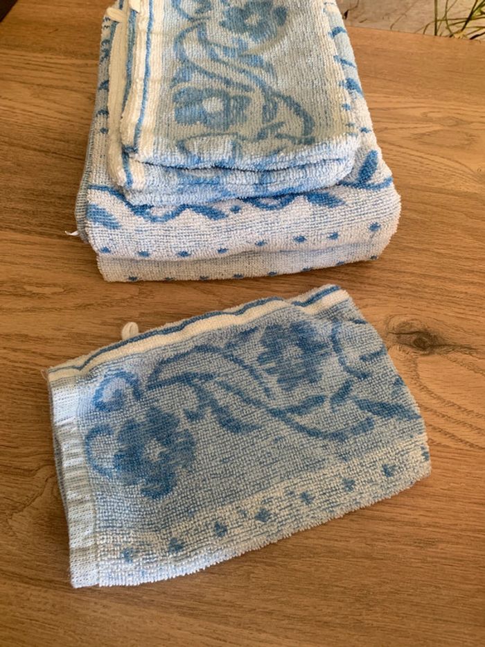 2 serviettes bleu 74x45cm + 4 gants de toilette assortis J’aime le même lot en rose sur Vinted