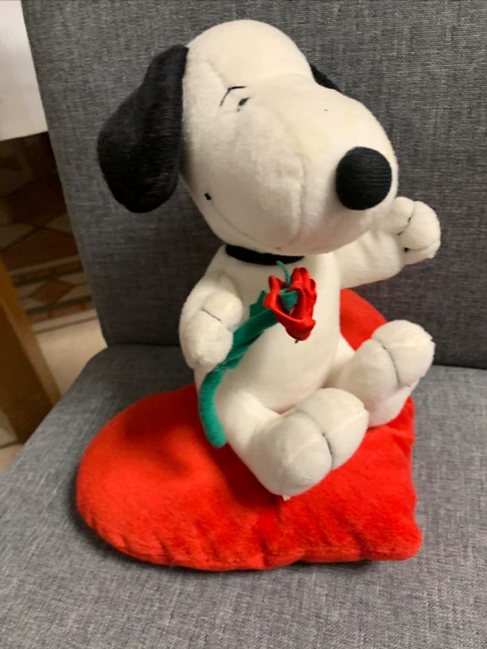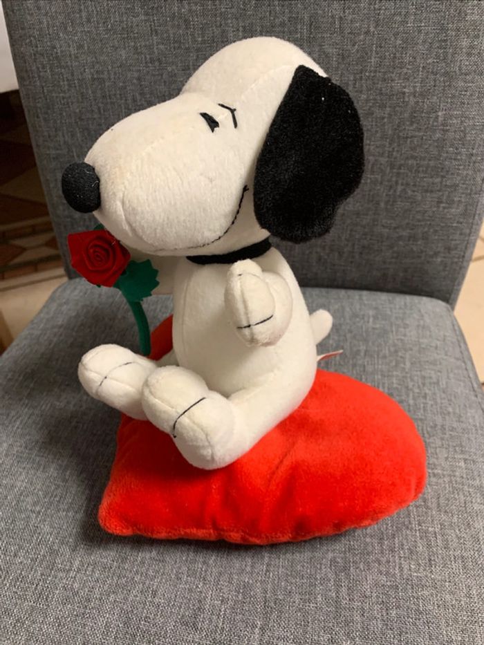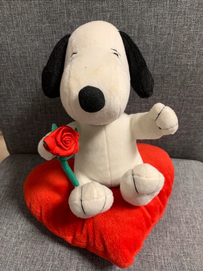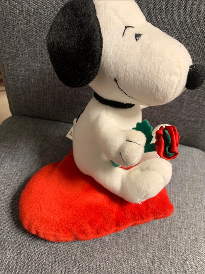 Snoopy avec une rose posé sur un coeur peluche Snoopy - photo numéro 10
