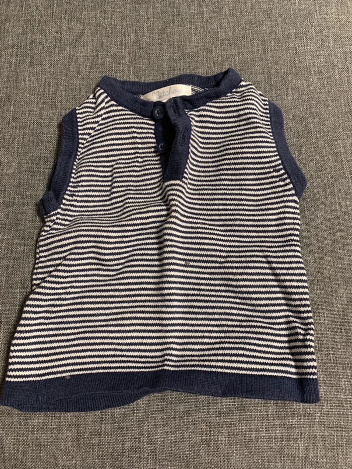 Gilet bleu sans manche rayures 1 mois bébé - photo numéro 1