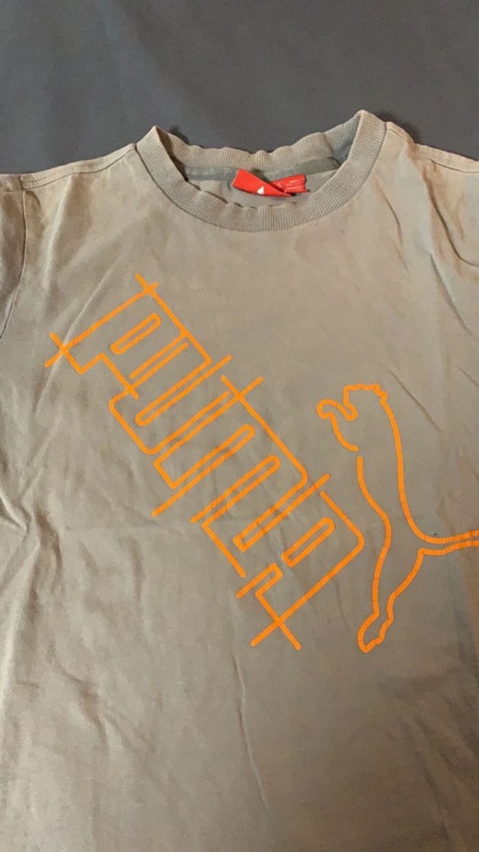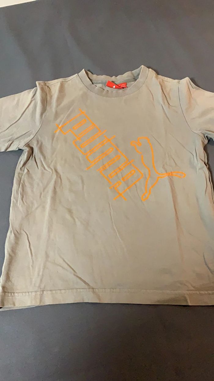 Tee shirt gris/vert Puma orange 10 ans - photo numéro 1