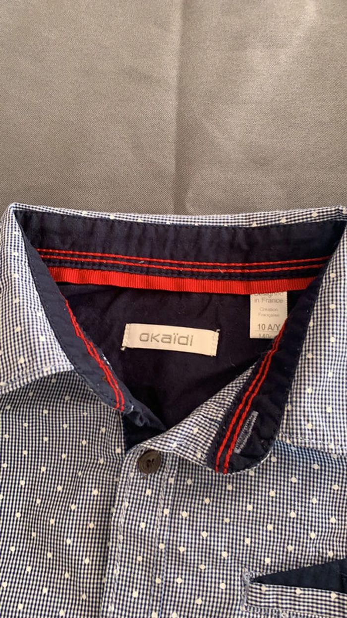 Très belle chemise 10 ans bleu/gris/blanc Okaidi État nickel
