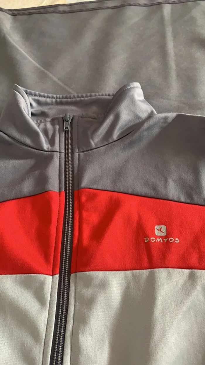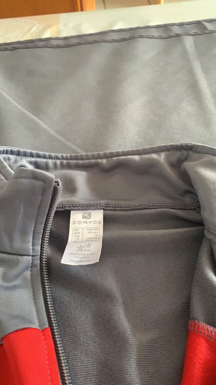 Veste sport zip Domyos 10 ans gris/rouge - photo numéro 1