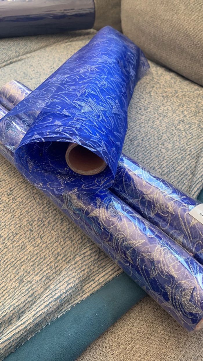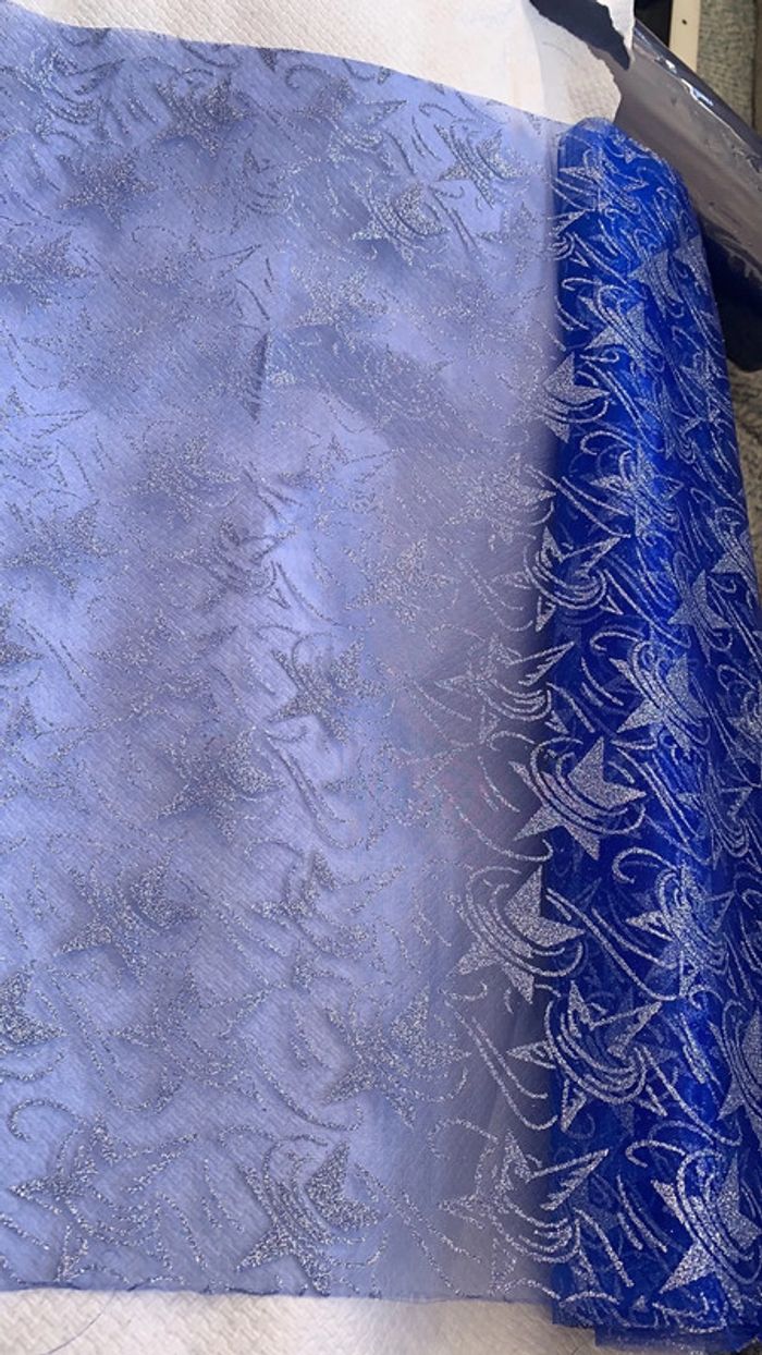 2 Chemin de table 36cm x 5m bleu et étoiles + 1 morceau restant