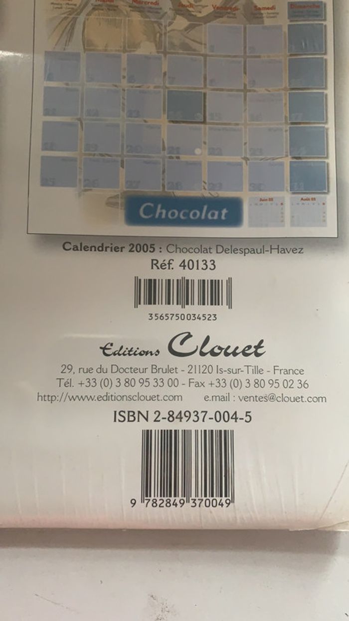 Ancien calendrier marques de chocolats 2005 - photo numéro 4