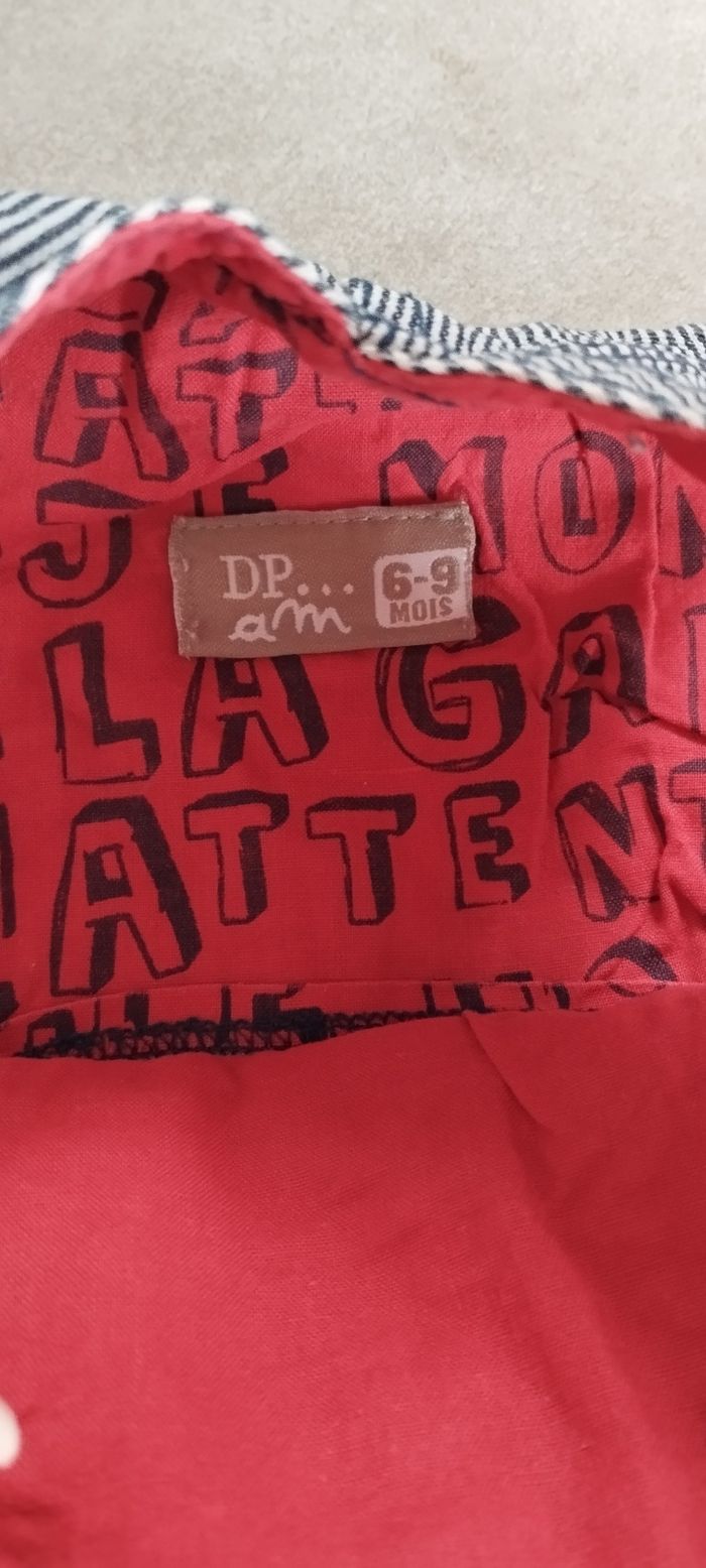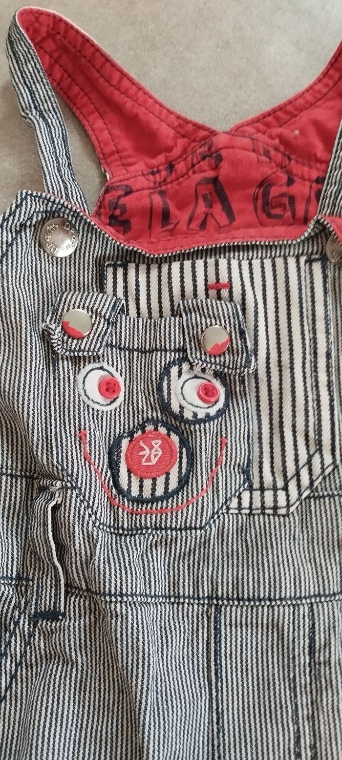 Bonjour, Je vends cette salopette pour garçon en taille 6/9 mois de la marque DPAM en très bon état