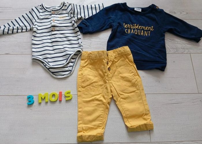 Lot tape à l'oeil 3 mois Une tenue body côtelé, un pantalon et un sweat Très bon état #claireconcoursenfant #claireconcours56cm