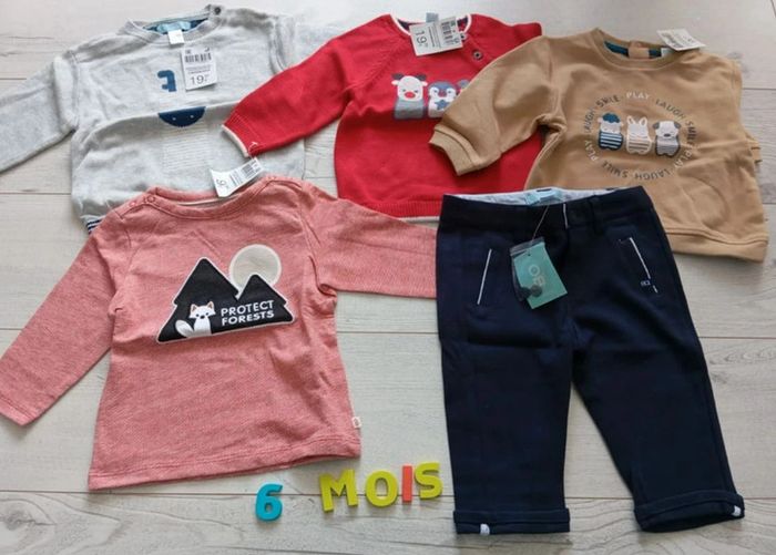 Lot Okaïdi 6 mois neuf avec étiquette 1 tee shirts 2 pulls 1 sweat 1 pantalon Tout est neuf avec étiquette, valeur 75€ #claireconcoursenfant #claireconcours62cm