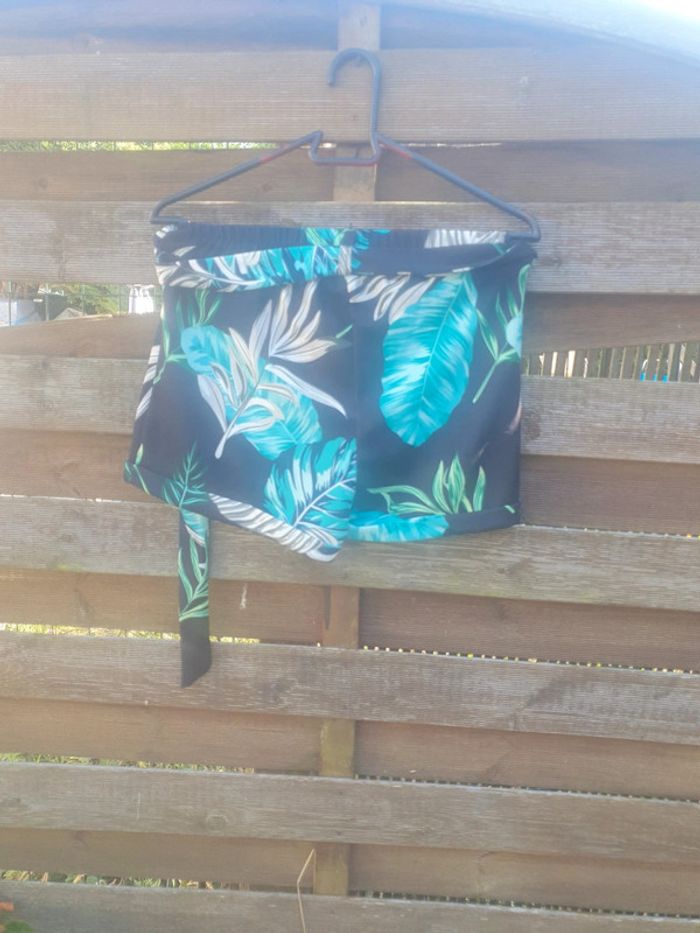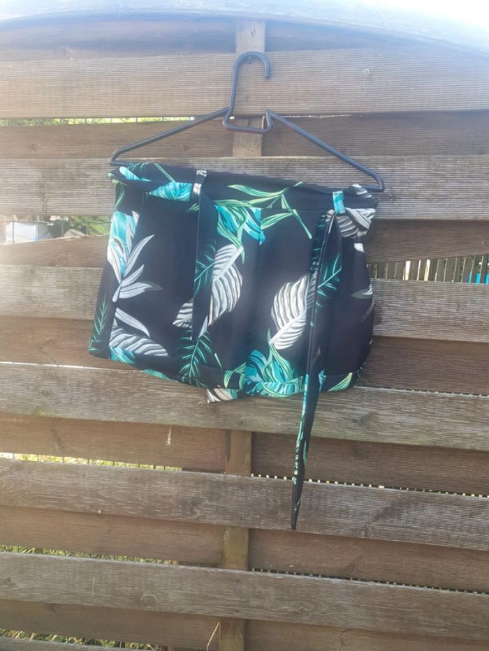 Short noir feuillage vert avec ceinture