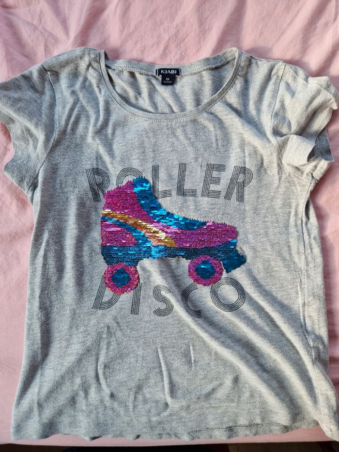Tee-shirt manches courtes fille Kiabi gris roller sequins 126-131 cm
