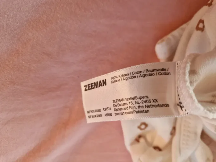 Pijama 1 pièce mixte Zeeman blanc géométrique 62 cm