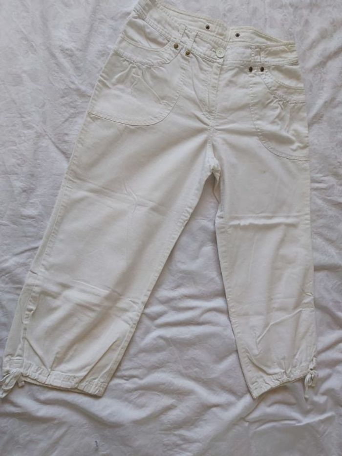 Pantacourt Kiabi Woman Taille : 40 Couleur : Blanc Composition : 50% Coton et 50% Lin En très Bon Etat 🛍️ N'hésitez pas à faire un lot 🛍️ Bon Shopping !