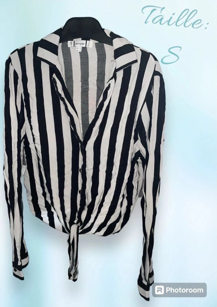 Chemise manches longues femme avec noeud a faire en bas Taille: S Marque: jennifer Couleur: noir et blanc #prescillia60 #prescillia60_vêtementfemmes Envoie rapide et soigné Réduction activé si achat en lot