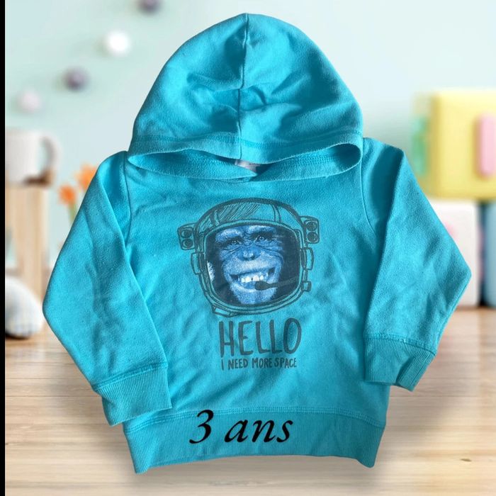 Pull à capuche garçon Dessin d'un chimpanzé avec casque d'astronote. Couleur: bleu Marque: lahalle Taille: 3 ans #prescillia60 #prescillia60_3ansgarcons Envoie rapide et soigné Réduction activé si achat en lot