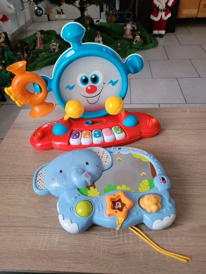 Vend lot de 2 jeux d'éveil musical en très bon état, juste des signes d'usures liés au jeu, comprenant un miroir magique des p'tits copains vtech à partir de 3 mois et un piano avec grosse caisse winfun pas complet, à partir de 9 mois. Les 2 sont fonctionnels comme montré en photos.