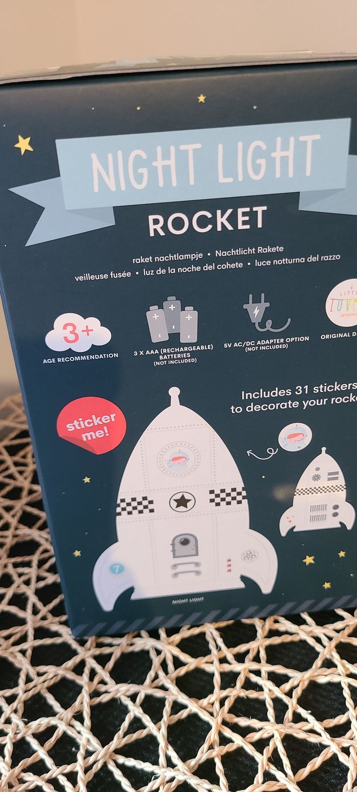 La lampe parfaite pour les petits explorateurs qui deviennent fous pour l'espace! La fusée a une feuille avec des autocollants pour le décorer comme vous le souhaitez avec l'enfant. Il a une minuterie et s'éteint après 15 minutes pour économiser de l'énergie Little Lovely.