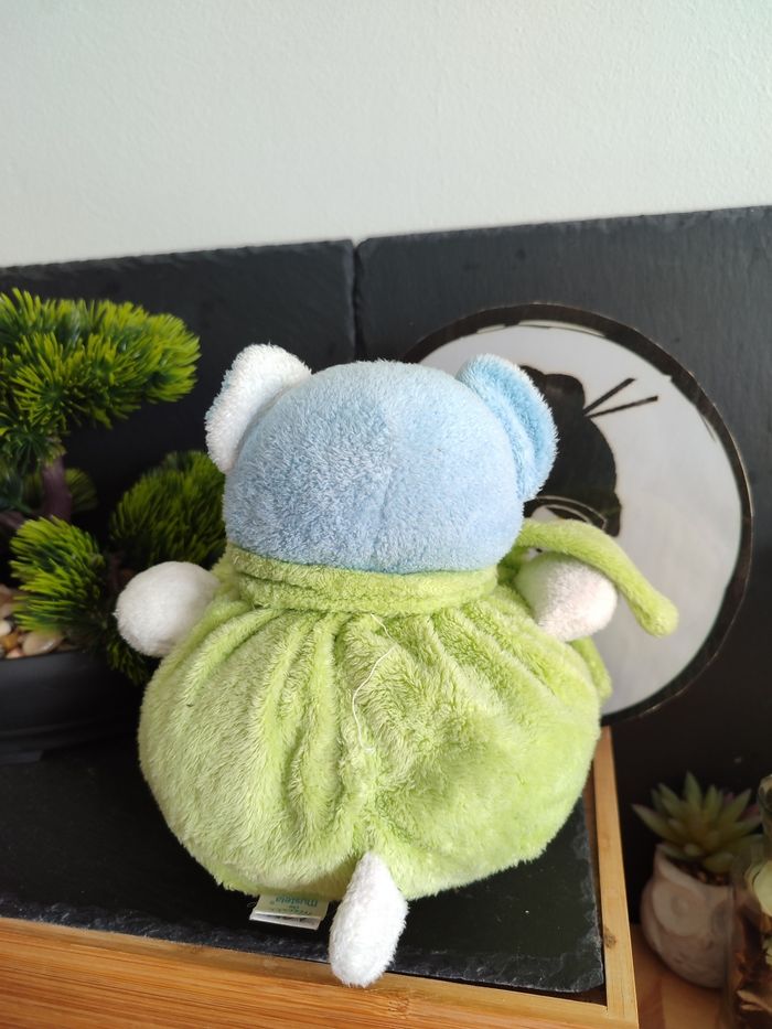 peluche Doudou ours boule Musti mustela écharpe bleu blanc vert PE0229 - photo numéro 2