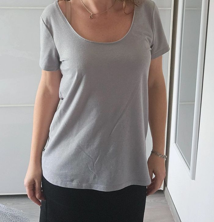 📌 Lot 20% de remise pour l'achat de 5 articles, suite ... T-shirt gris, légèrement brillant, manche courte, comme neuf ➡️Largeur à plat sous les bras  49 cm ➡️Longueur 65 cm ➡️ Étiquette composition manquante ⭐ Excellent état ✈Envoi rapide des colis 💗 Abonnez vous à mon profil, nombreux articles ajoutés régulièrement ! 🌸 Tapez Laetitresors pour voir mes annonces #laetitresors_tshirt40 #tshirt #gris #bonobo #manche #courte #gris #brillant #top #uni #laetitresors