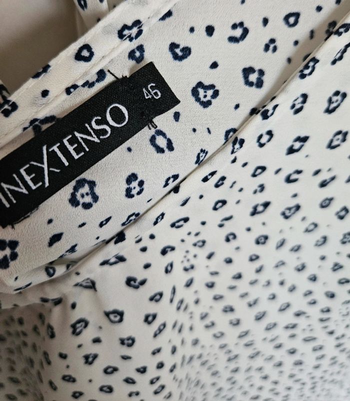 #blouse #in #extenso #manche #courte #fleur #bleu #blanc #fluide #lien #nouer #cou #bouton
