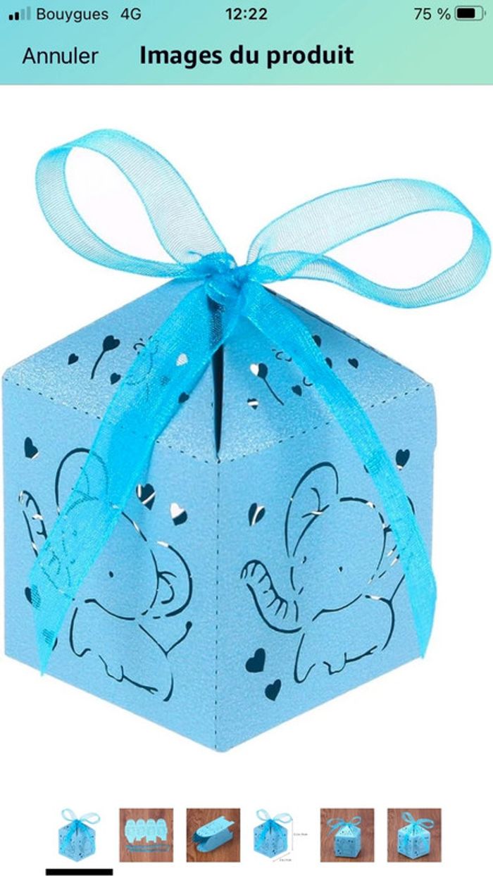 Lot de 50 boîtes à dragées pour baptême, motif éléphant, couleur bleu , neuf