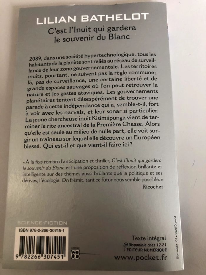 Livre « C’est l’Inuit qui gardera le souvenir du Blanc »,de Lilian Bathelot, science fiction, 251 pages