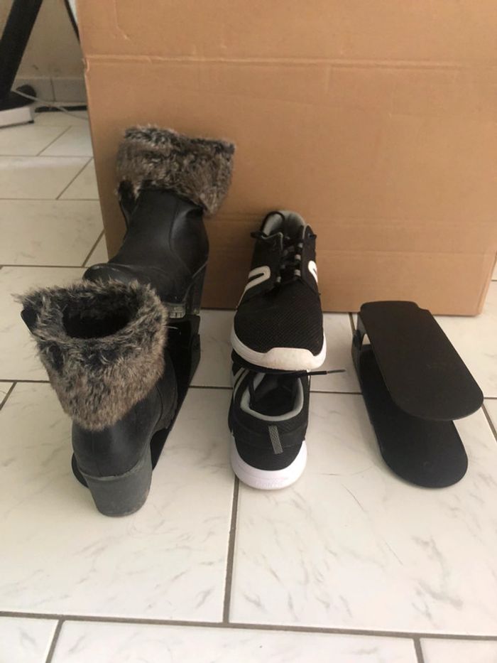 Lot de 3 Organiseurs de chaussures réglables , noir , très bon état