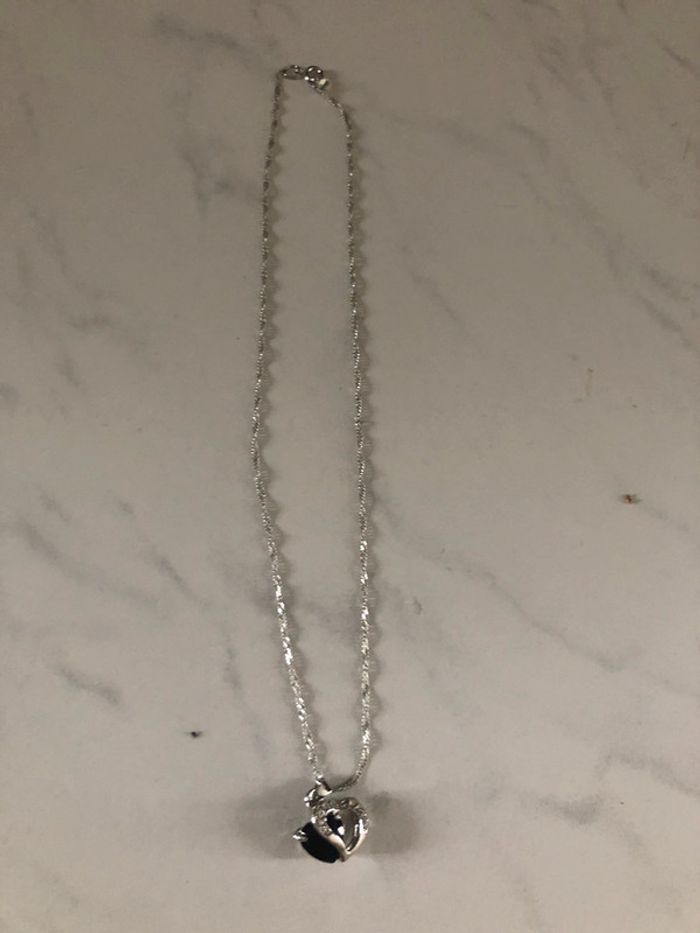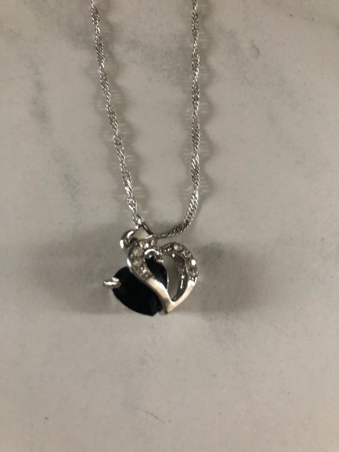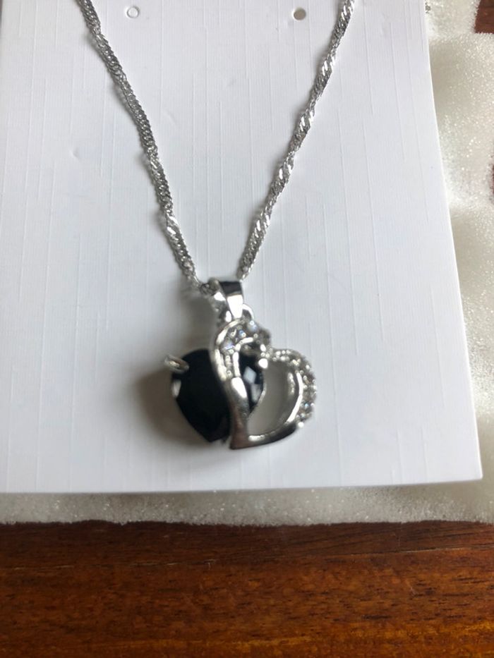 Collier Coeur , pierre noire , chaîne en acier inoxydable, couleur argent et noir