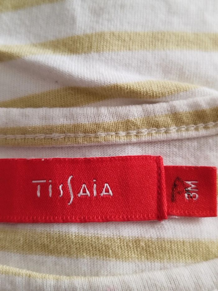 Tee-shirt manches courtes blanc à rayures vert Tissaia taille 3 mois