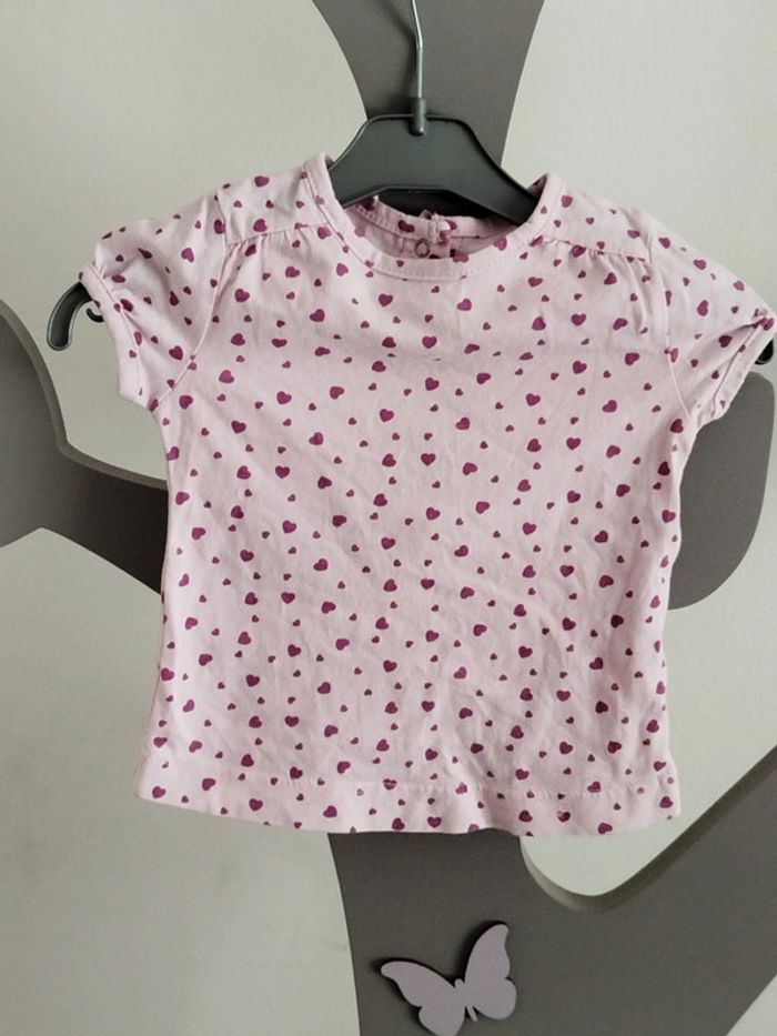Tee-shirt manches courtes rose imprimé coeurs mauve Kitchoun taille 1 mois - photo numéro 1