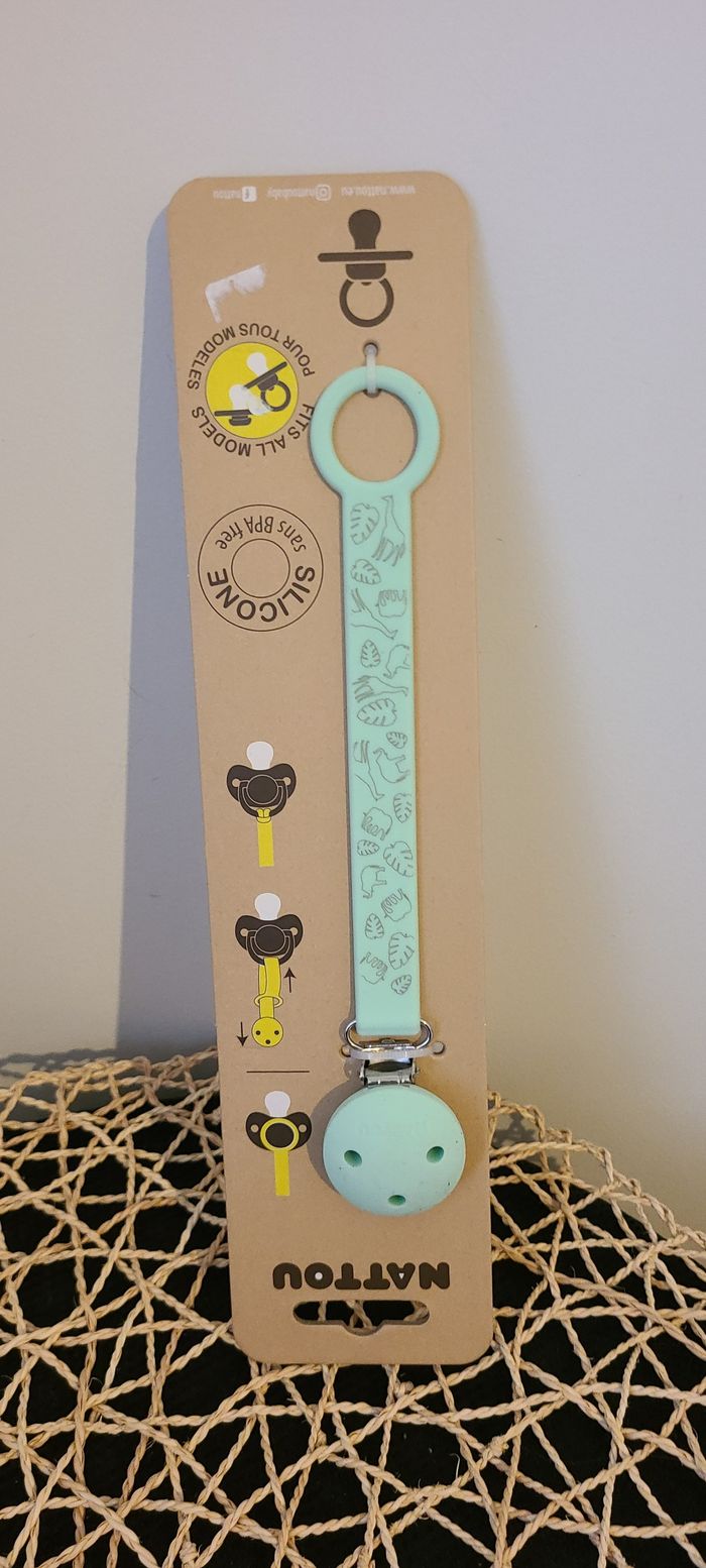 Nattou Attache tétine silicone plat imprimé Vert Menthe - photo numéro 1