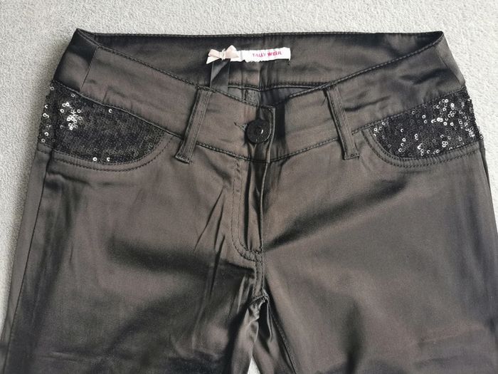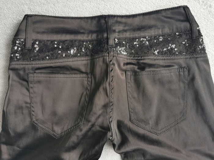 Pantacourt taille 34, noir effet satiné, sequins à la taille, taille basse. Tally Weijl totaly sexy