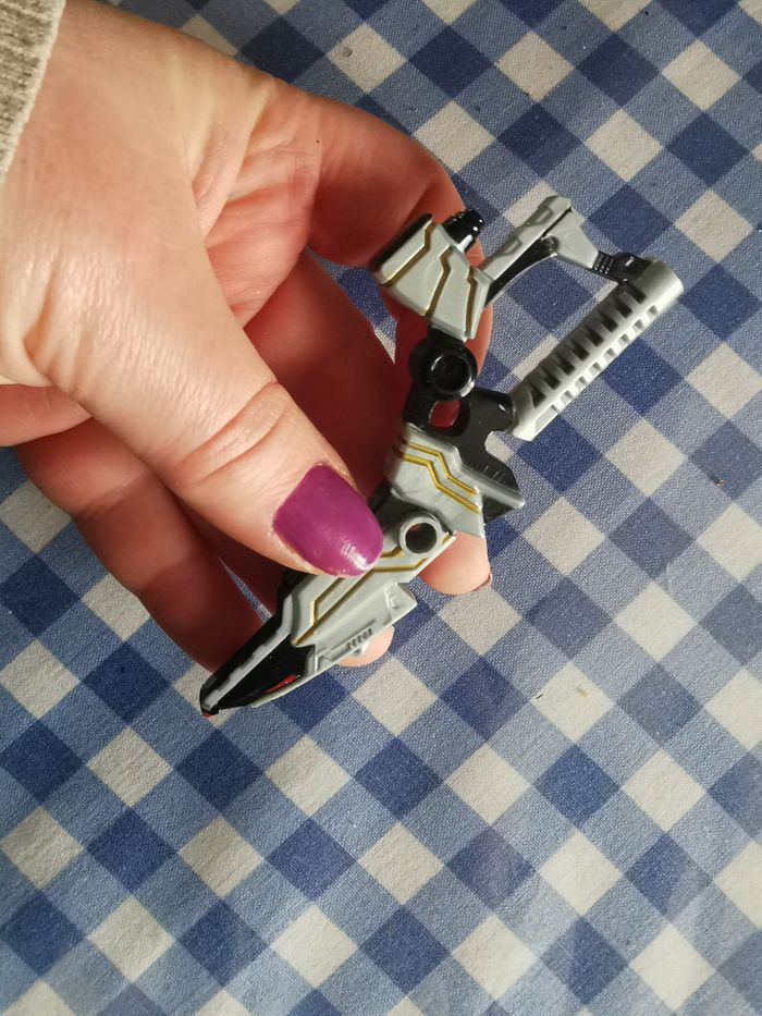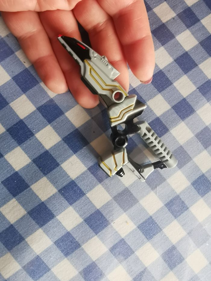 Pistolet SCG PRB 13 de megaforce deluxe SFX robo knight power rangers, en plastique, en très bon état, taille 10x4 cm, poids 5g. Je vends le pistolet seul, je n’ai pas de figurine.