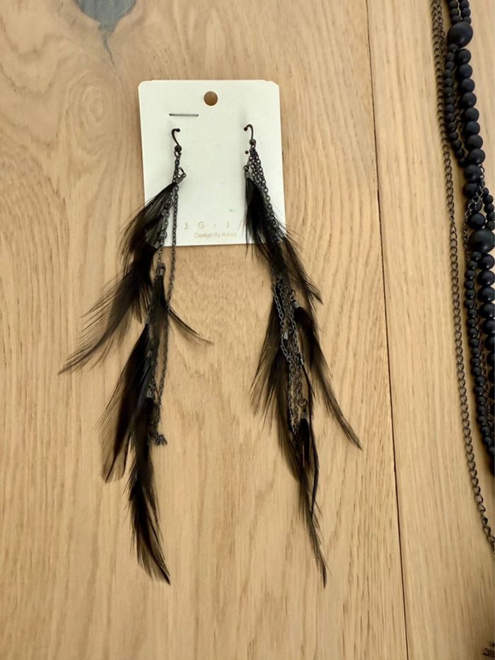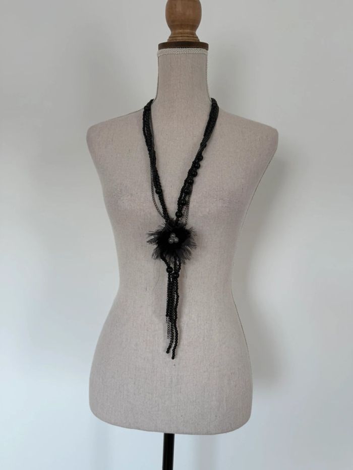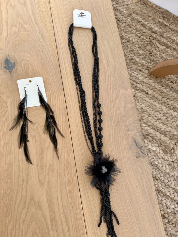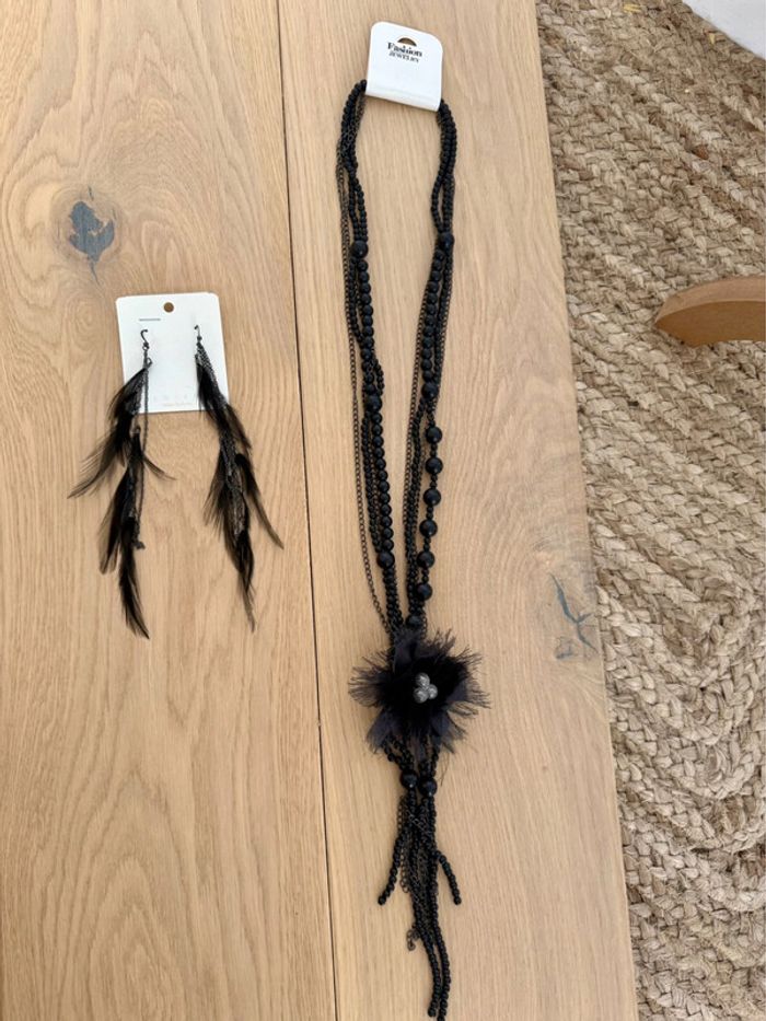 Collier promod sautoir noir boucle d’oreilles Ketting Halskette Necklace Collar Colar Collana bijoux femme fleur plume perles Collier promod Boucles claire´s -5% supplémentaires pour un lot de 3 articles !