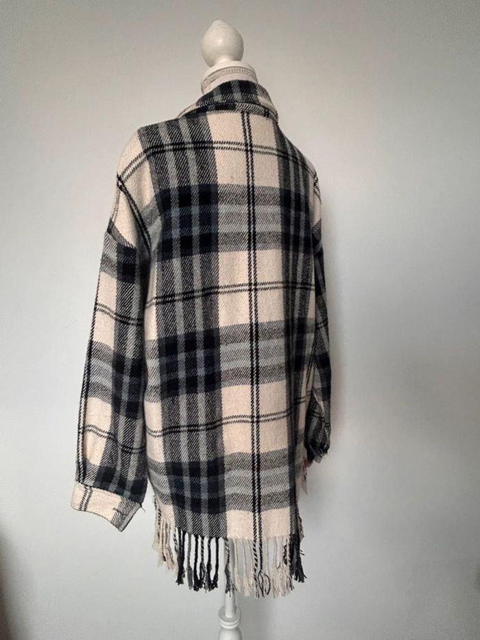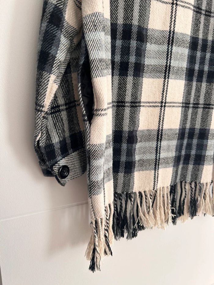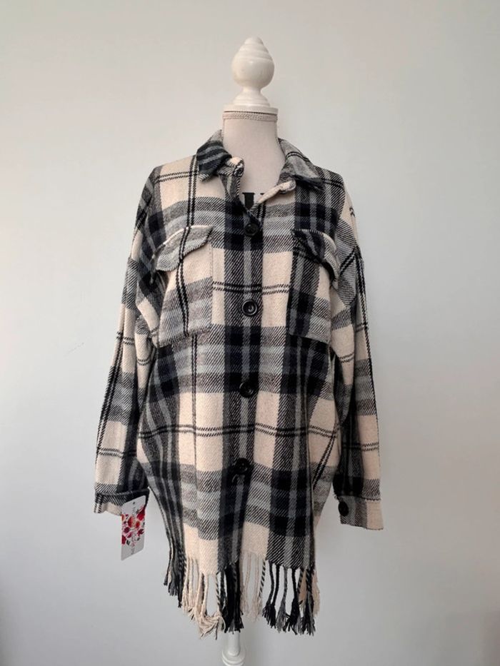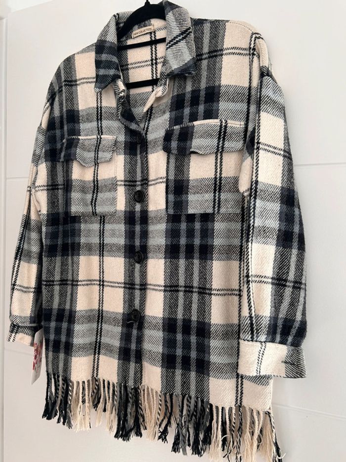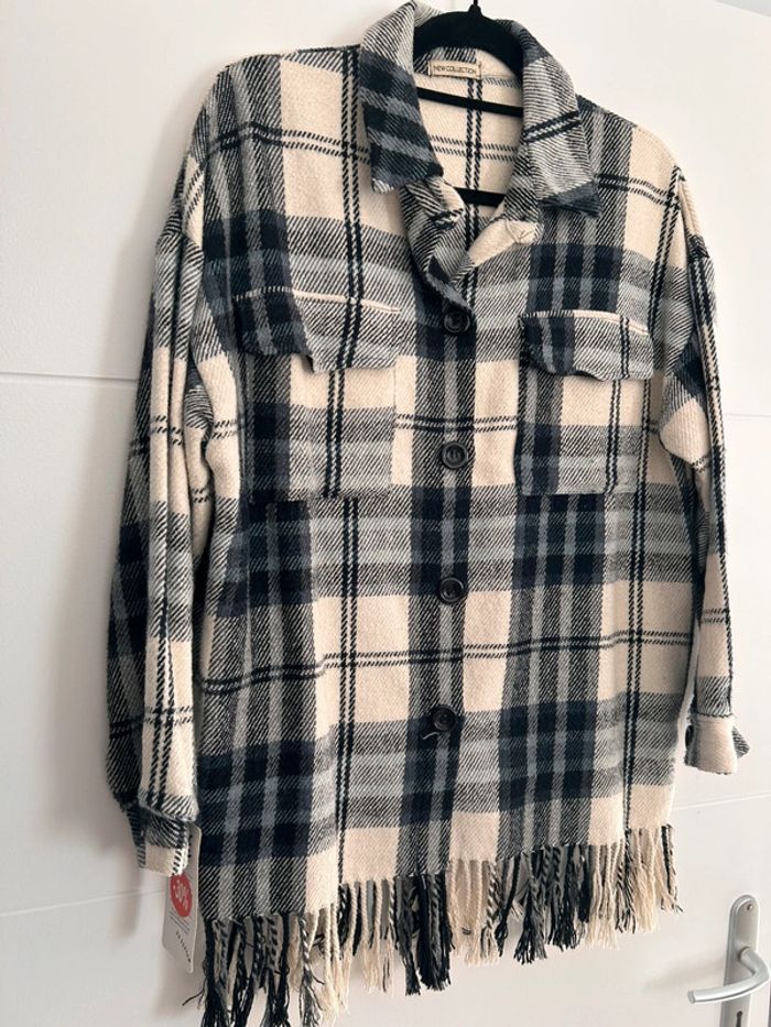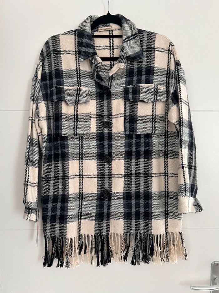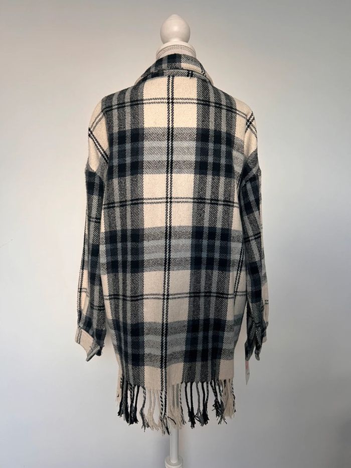 Veste vestido franges manteau blouson vest giacca chaqueta cardigan gilet chaleco rebeca colete bohème carreaux bleu noir blanc manches femme woman donna mujer Taille unique convient du XS au L /XL -5% supplémentaires pour un lot de 3 articles !