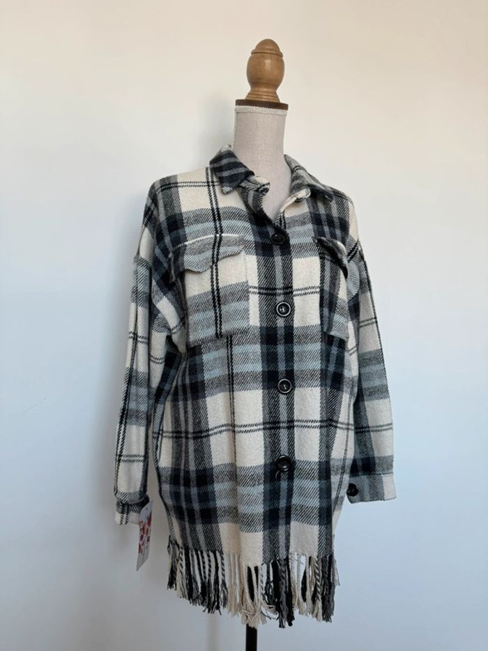 Veste vestido franges manteau blouson vest giacca chaqueta cardigan gilet chaleco rebeca colete bohème carreaux bleu noir blanc manches mujer donna woman femme Taille unique convient du XS au L /XL -5% supplémentaires pour un lot de 3 articles !