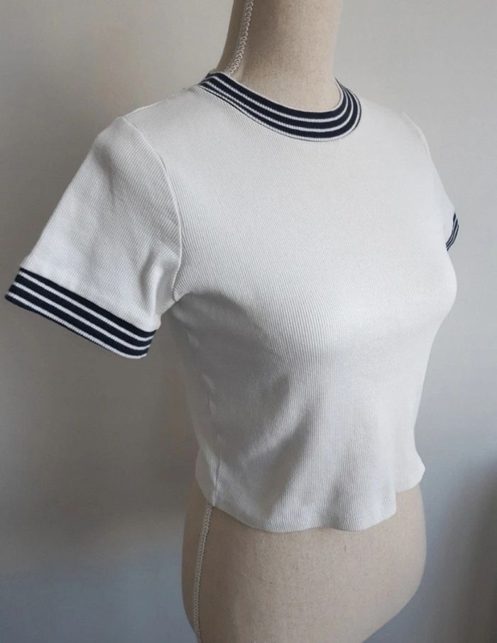 Tee shirt court Crop top Finement côtelé Près du corps moulant #anthonyagnes_femme38