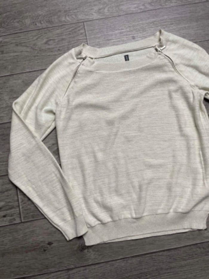Pull Naf naf Taille S Crème et fibre argenté Fermeture éclair sur l’avant Peu porté Vetements Femme #ingridblogmodef 📦 Envoi soigné 🏠 Non fumeur