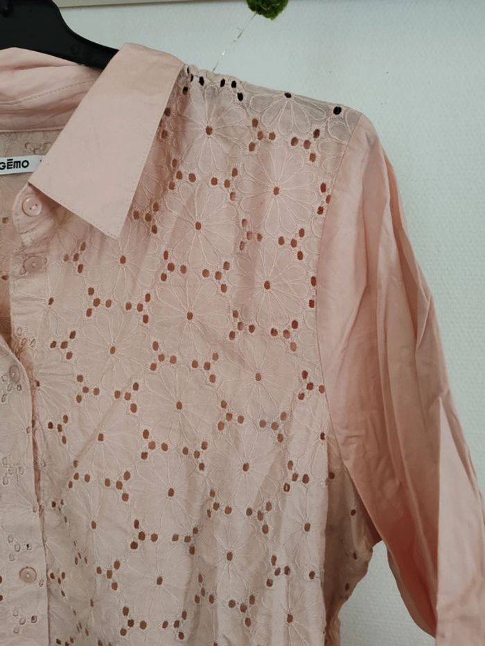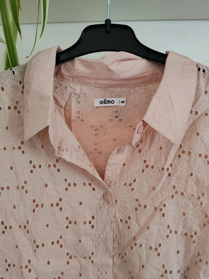 Chemisier rose poudré Gémo Dentelle ajourée fleurs Taille 46 Très bon état Manches longues ➡️ #ursullabuffayvetements