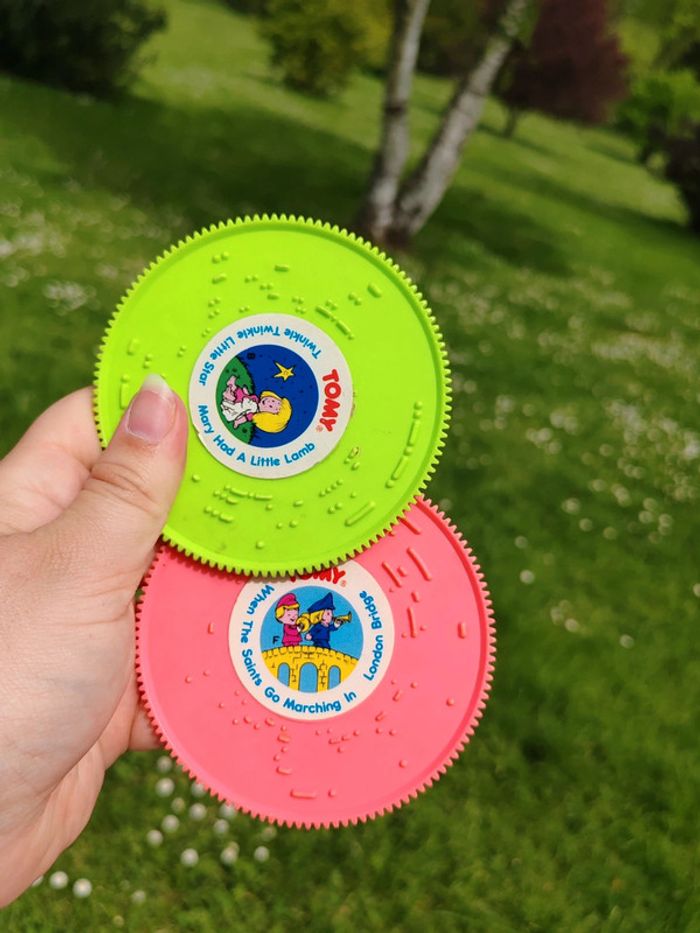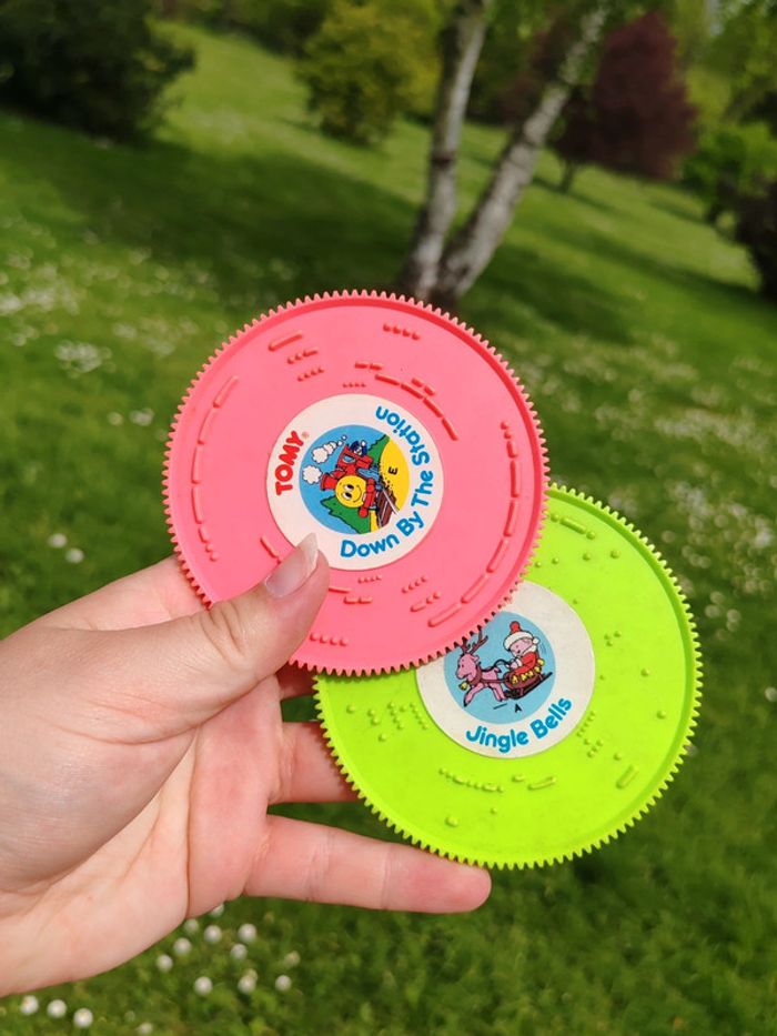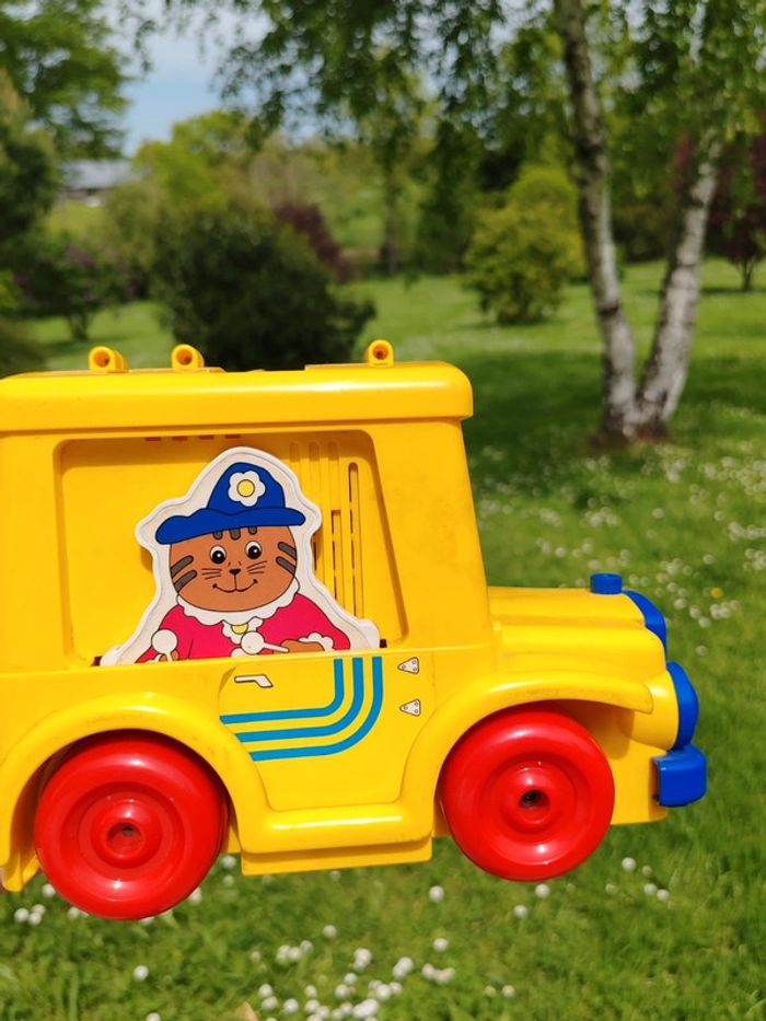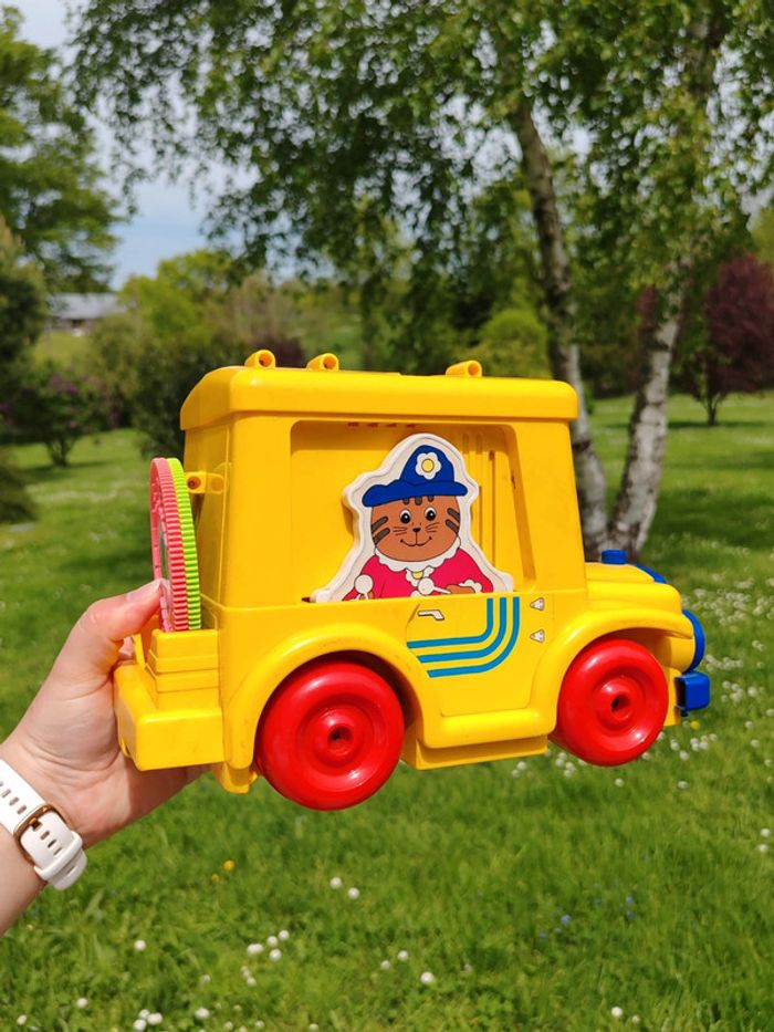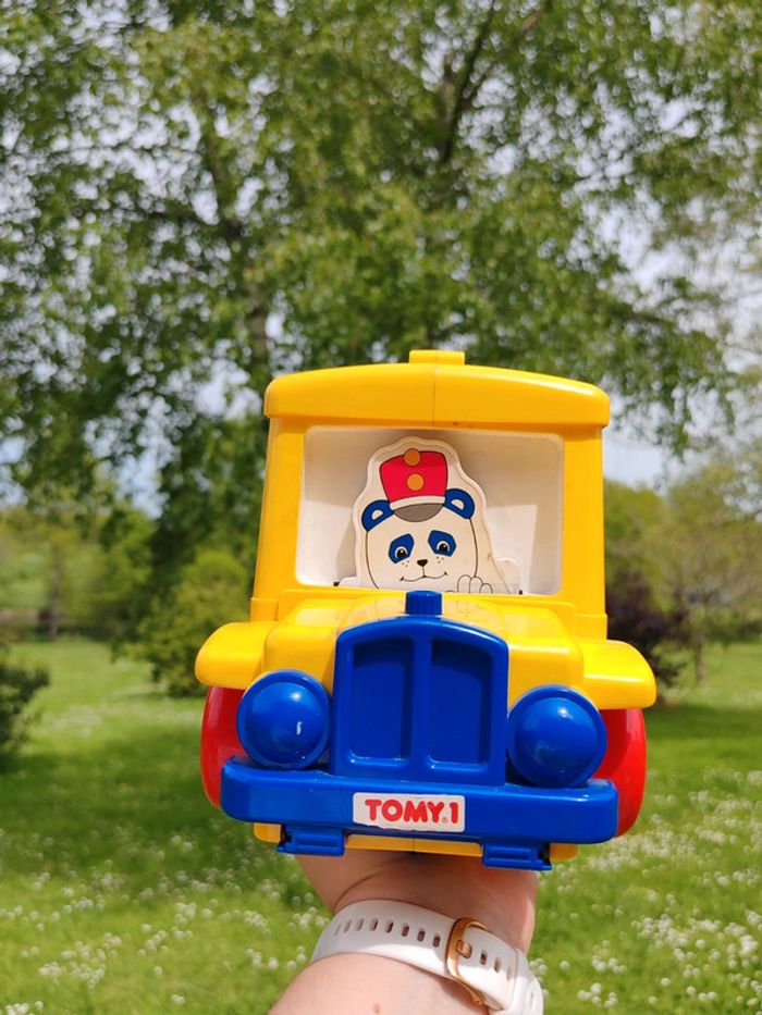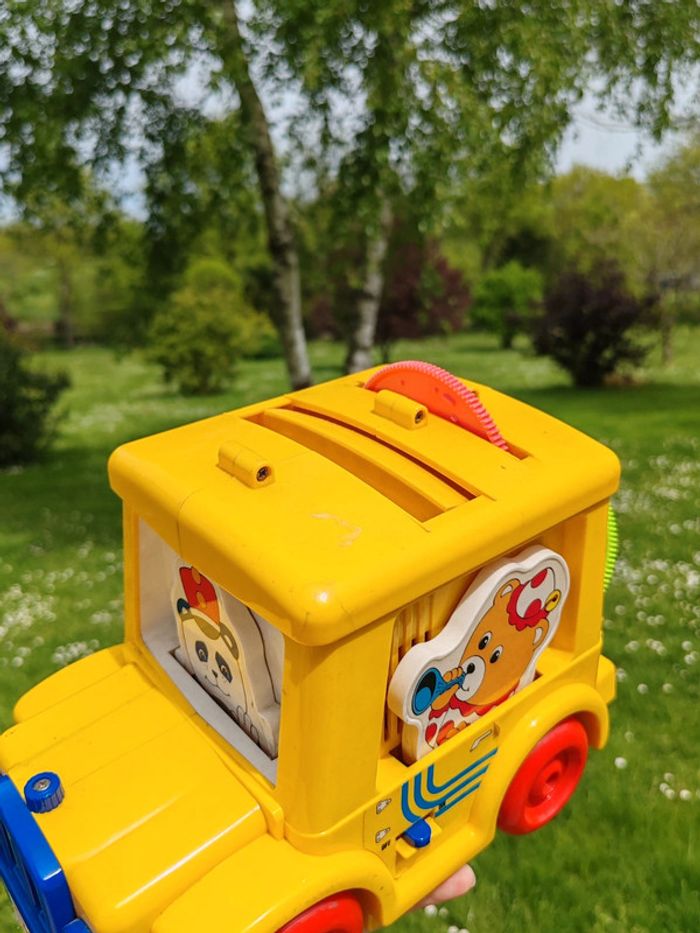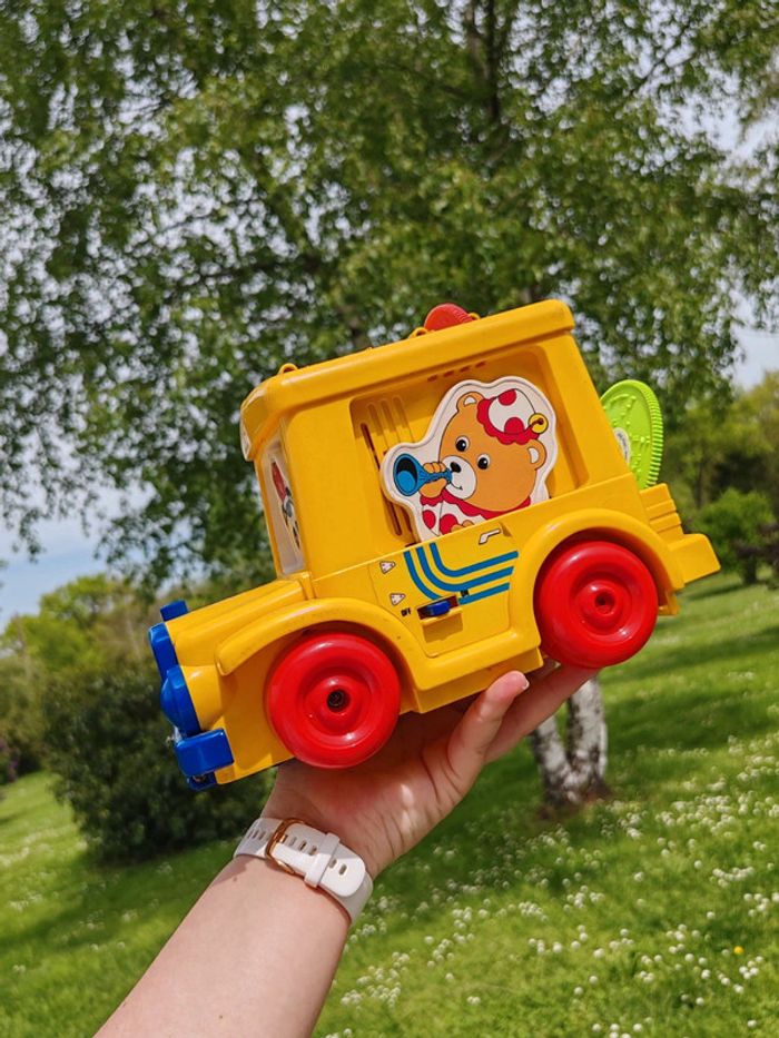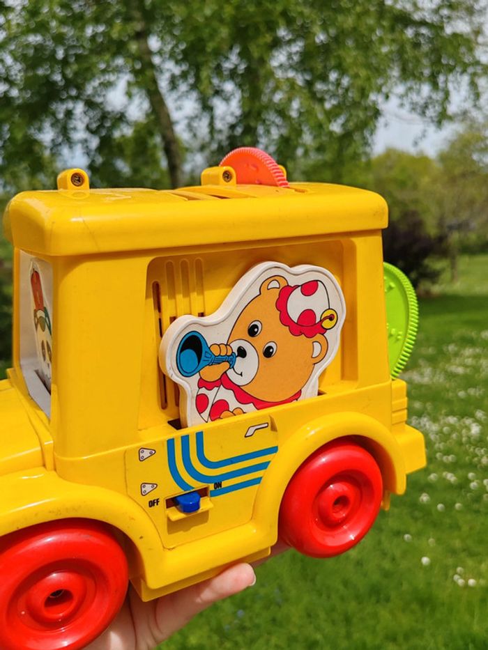 Bus dans le même style que le train tuneyville de tomy Marque Tomy Vintage En plastique Il avance et lit des disques (inclus) pour faire des musiques type comptines et berceuses En très bon état et fonctionnel Vendu avec 2 disques (donc 4 mélodies en tout cas 1 par face) ➡️ #ursullabuffaybébé #ursullabuffayfisherprice