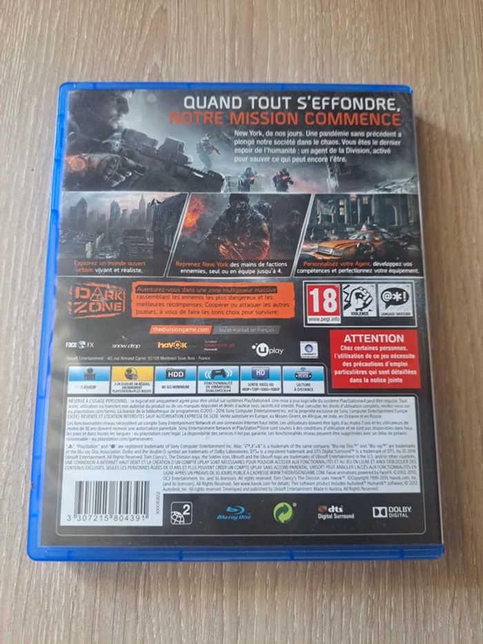 Jeu ps4 Tom clancy's the division jeu complet en excellent état Envoi rapide et soigner