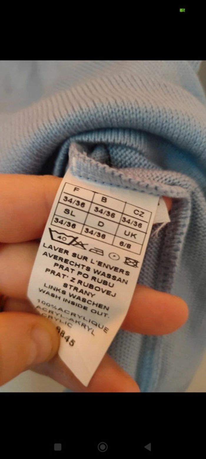 #femme34samcec1802 #femme36samcec1802 Pull ras de cou bleu à longues manches. Petites perles au niveau des coutures des manches et du col. Taille 34/36 Tissu extensible N'hésitez pas à me demander les mesures. Blancheporte