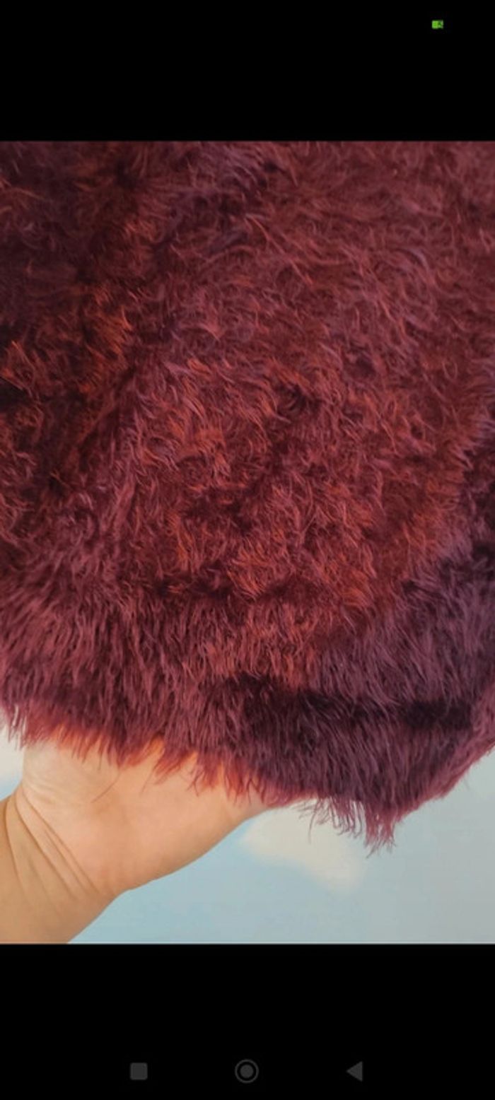 #femme40samcec1802 #femme42samcec1802 Pull à poils couleur bordeaux, manches courtes, très joli, épouse parfaitement la silhouette. Vêtement extensible Taille L Gémo