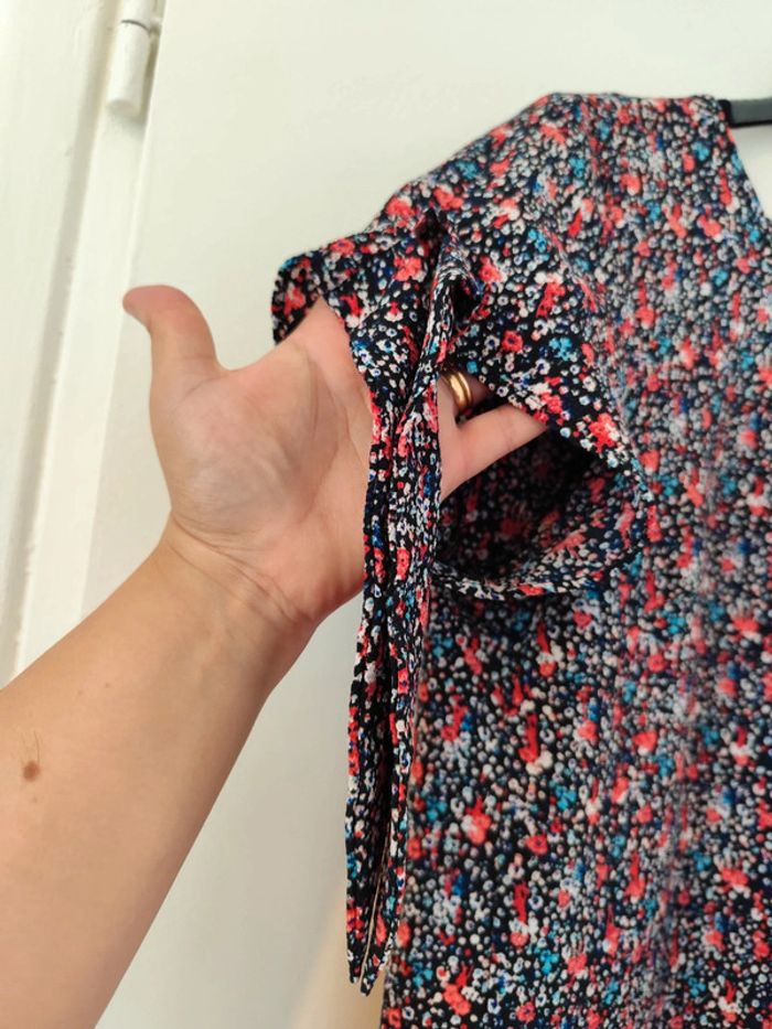 #femme42samcec1802 #femme44samcec1802 Blouse fluide noire et multicolore, manches courtes avec possibilité de faire un nœud (voir photos) Taille 42/44 Damart