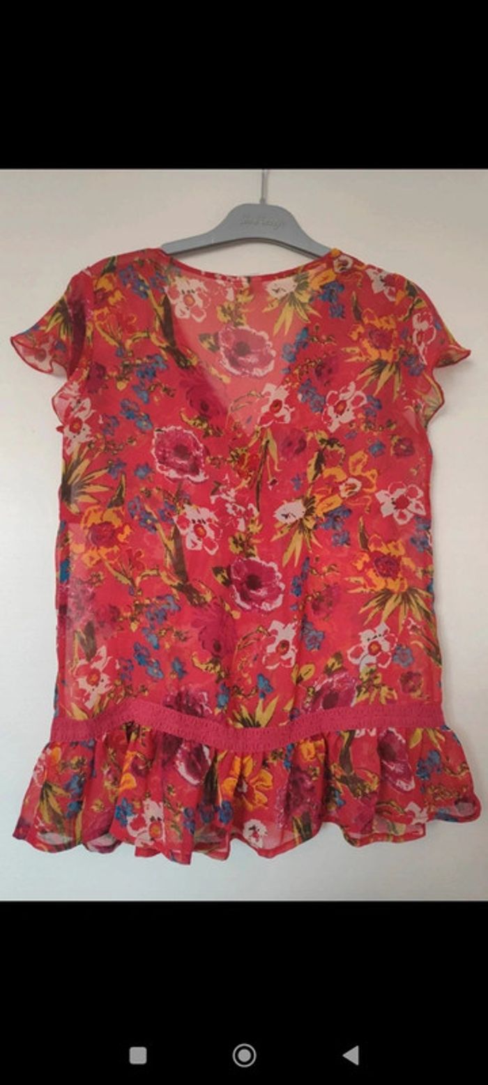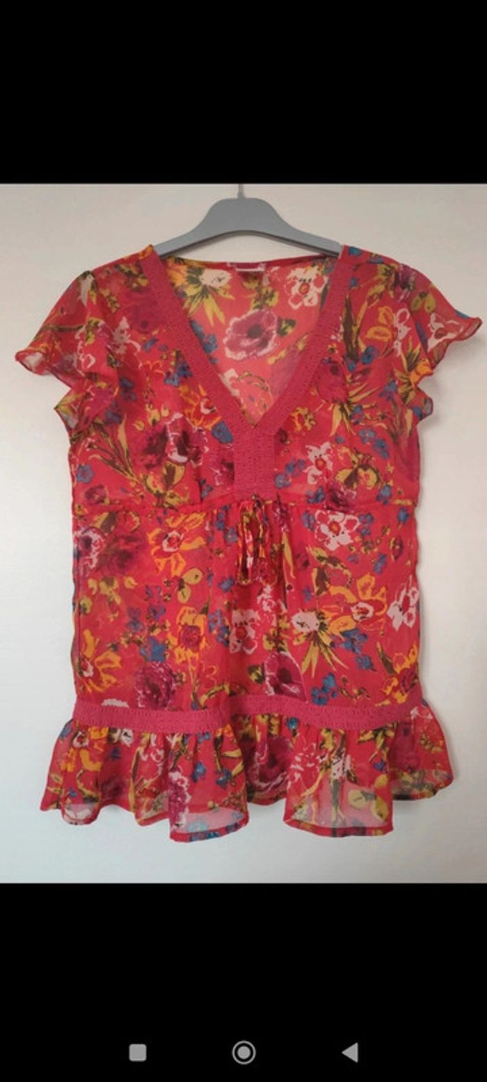 Blouse transparente rouge fleurie à dentelle taille 38 - photo numéro 5
