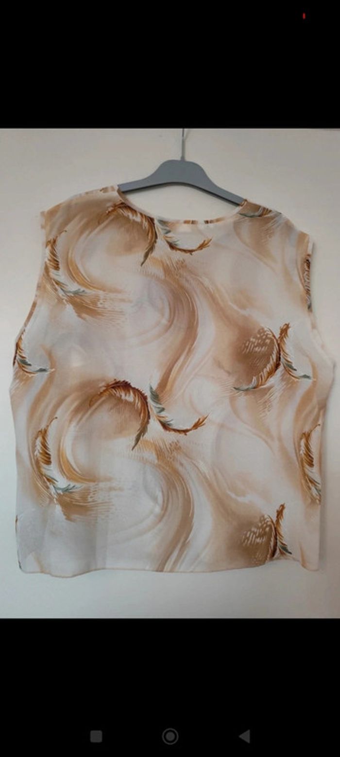 #femme50samcec1802 Top débardeur court en voile transparent. Beige/marron. Tissu non extensible. N'hésitez pas si besoin des mesures. Fermeture sur le côté un peu résistante. Taille 50