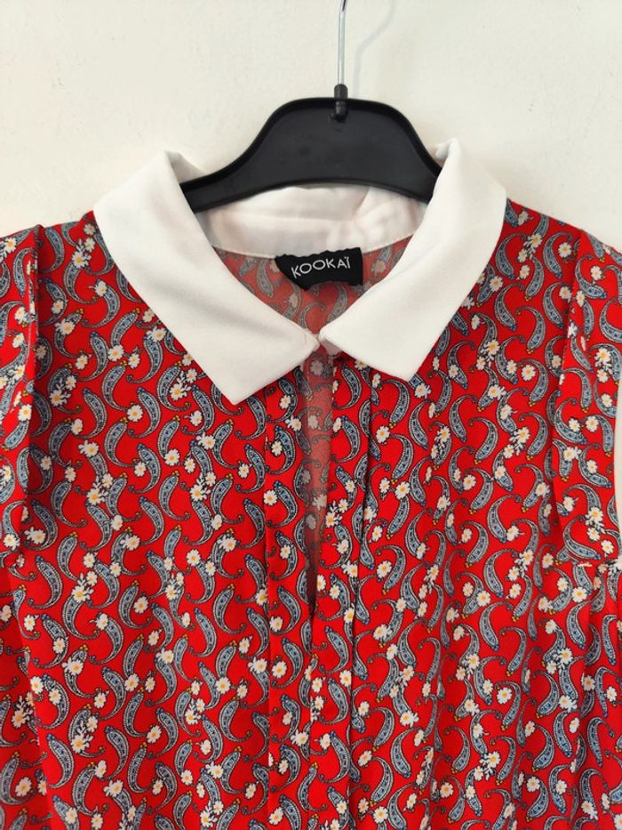Robe rouge à fleurs col claudine taille 38 Kookaï - photo numéro 7