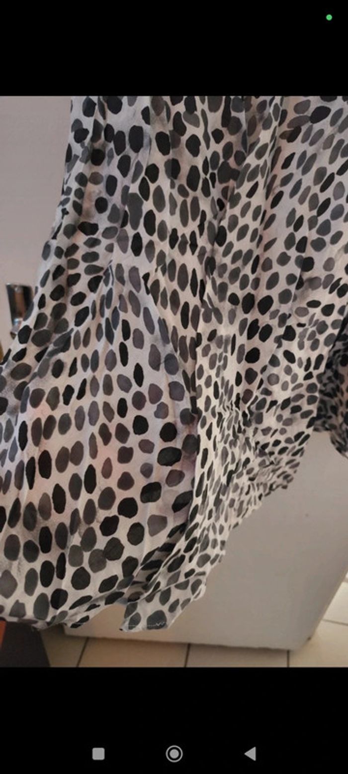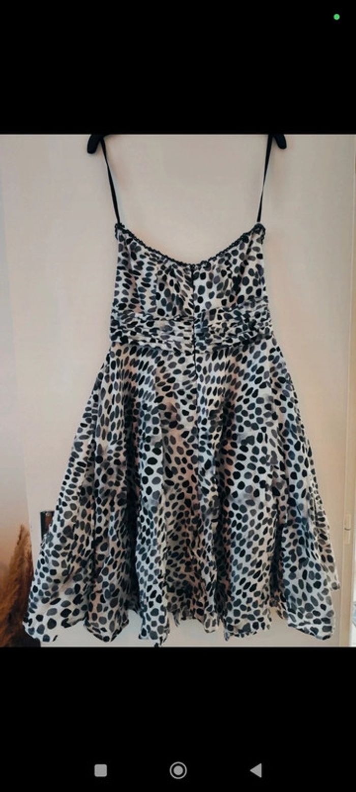 #femme38samcec1802 Robe patineuse sans bretelle, à gros pois. Ceintrée puis très évasée. Épaules découvertes. Tissu non extensible N'hésitez pas si besoin de mesures Couleur gros pois noir/gros sur fond blanc. 100% coton Taille 38 Naf Naf #robesansbretelles #robesansmanches38