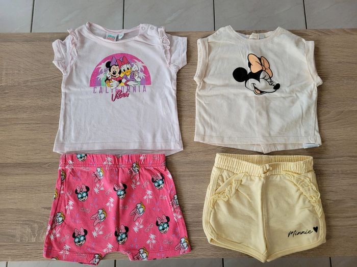 Vend lot de 2 ensembles Disney Minnie fille taille 6 mois en très bon état juste le short rose qui est un peu grand pour les petits bébés crevettes comme l'était ma fille alors elle l'a porté jusqu'à ce qu'elle porte du 9 mois mais acheté l'ensemble ainsi en magasin. Lot comprenant 2 tee-shirts manches courtes et 2 shorts.