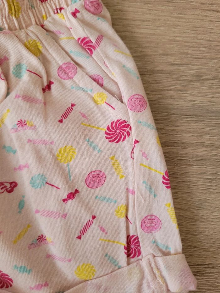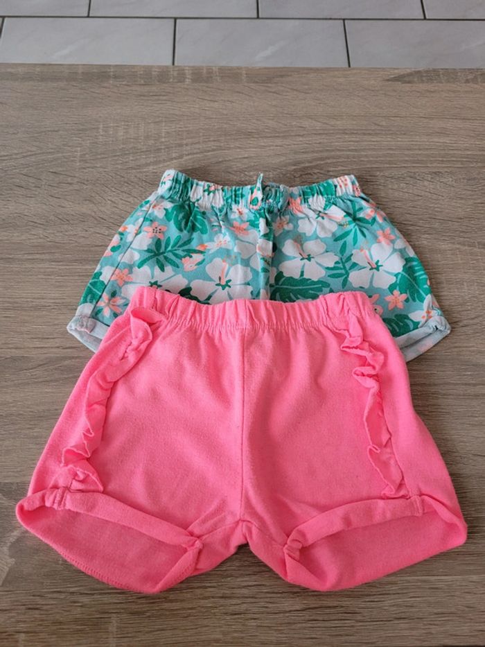 Vend lot de 2 ensembles fille taille 6 mois en très bon état juste un défaut sur un short (voir photos). Lot comprenant 2 tee-shirts manches courtes et 2 shorts. J'offre les 2 shorts en dernière photo.